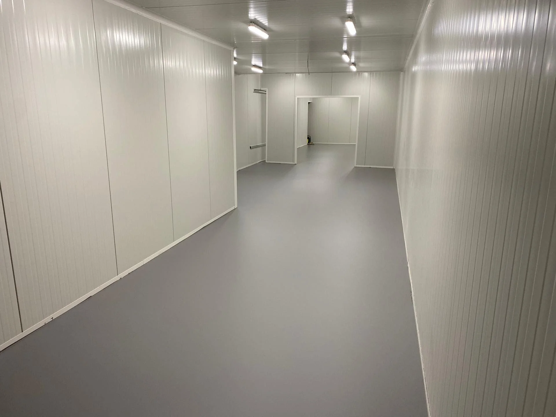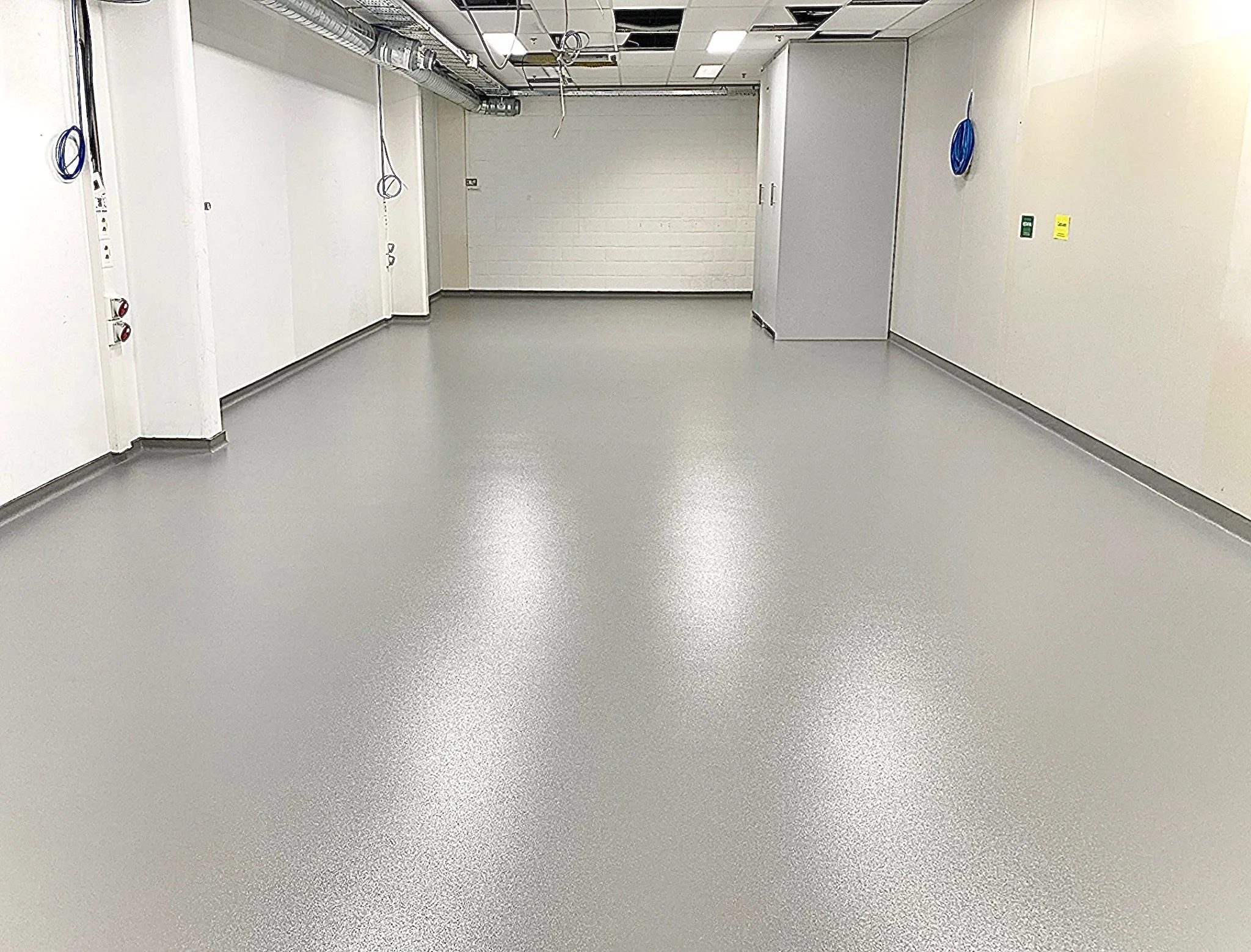 Als voorbeeld: primerlaag, epoxy schraaplaag, PU vloer, topcoating